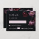 This romantic dark moody Wedding Response Card features 3D purple and dark red peony flowers on a black background. Matching invitation available.