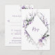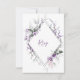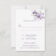Delicadas flores de aquarela roxas e rosadas com folhas e caules verde-escuros e roxos rodeiam um cartão de resposta com um quadro duplo em forma de diamante. Convites de casamento combinando disponíveis. Fácil de personalizar com suas próprias informações usando uma mistura de fontes modernas e caligráficas. Se precisar de ajuda ou quiser este design em outro produto, por favor envie um e-mail para shutterbug600@yahoo.com