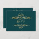 Cartão RSVP Quadro de Ouro Elegante Verde Petrol