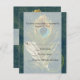 Parte de uma coleção completa de casamento. Apresenta arte em close de uma pena de pavão nas cores azul cobalto, azul turquesa e verde celadão. Fundo em azul escuro com um efeito vintage e desenho de redemoinho. © 2010 www.CustomInvitesOnline.com