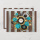 Cartão RSVP Relógio e Rosas de Turquesa em Striping
