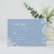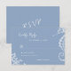 Summer ocean beach destination blue and white wedding response RSVP featuring hand-drawn seahorse and corals and a chic funky playful whimsical calligraphy script.
