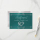 Cartão RSVP Romantic Silver Scroll Heart on Teal