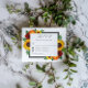 Design apresenta girassóis, rosas e flores silvestres elegantes com uma paleta de cores amarelo ouro, vermelho e laranja. Design também apresenta uma estrutura de cinza de carvão. Você pode alterar a cor de fundo na parte frontal e na parte traseira para a cor de sua escolha ou deixar ambas definidas como brancas.