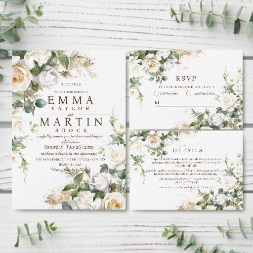 Placa RSVP Floral Elegante de Casamento de Rosas Brancas