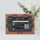 Traga seus convidados para um mundo de elegância escura e encantadora com nosso cartão de resposta de casamento gótico vintage com código QR. O fundo de ferrugem profundo e envelhecido estabelece a palco de um contraste impressionante, à medida que o texto em branco é exibido a partir de intrincadas caixas de texto em preto. No ápice deste convite, uma fronteira gótica tridimensional adornada com uma raia negra real captura a essência do mistério e do romance. O dorso é enfeitado com duas videiras interligadas de rosas pretas formando sutilmente um coração em torno de dois abraços, o que adiciona um toque de fascínio dramático. Liberte a magia e dê o tom para um dia de casamento inesquecível. Este cartão faz parte da Suíte de Casamento de Rosas Negras Gótica Raven & Black criada pela Simplesmente Farmhouse Press.