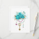 Chave de ouro antiga com rosas de turquesa de tendência, decoradas com folhas de ouro branco e miçangas cor-de-rosa e azuis. Cor agradável. Rosas de turquesa. Ouro branco. Tifania azul.
