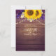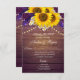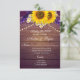 Este cartão de casamento rústico de flor de girassol roxo e amarelo é perfeito para o seu dia especial. O design apresenta um buquê floral de girassóis, lavandas, margaridas e riscas cercadas por luzes de cordas sobre um fundo de madeira de forma rústica. Fontes elegantes e delicadas adoram a placa RSVP. Este tema de design é perfeito para o seu casamento, rústico, elegante, vintage, país ou destino. Exibir a coleção completa na nossa página para itens correspondentes que satisfazem todas as suas necessidades de suíte de casamento.