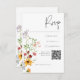 Este simples mas elegante design de resposta ao casamento apresenta um buquê de cor d'água rústica de flores silvestres vermelhas, amarelas, marrons, creme, burgundy e prados de prados roxos com verde. É parte da suíte de casamentos Rustic Summer Wildflower & Sunflower criada pela Simply Farmhouse Press.