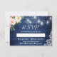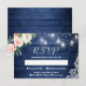 Cartão RSVP Rustic Blue Mason Jar Lights Blush Floral Weding