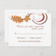 O cartão postal de resposta pode ser personalizado com a data de resposta e o texto de aceitação / arrependimento preferido, bem como uma resposta para o endereço no lado inverso. A nossa papelaria de casamento "Falling Leaves" apresenta folhagem de outono saturada e espirais de rolagem. As cores incluem laranja, cobre, marrom, vermelho e ouro. Cartão de Resposta - Estilo 1: Cartão de Resposta - Estilo 2 (inclui opções de entrada): com Resposta Postcard (endereço no verso): com com com