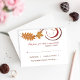O cartão de resposta pode ser personalizado com a data de resposta e a formulação de aceitação/arrependimento preferido. A nossa papelaria de casamento "Falling Leaves" apresenta folhagem de outono saturada e espirais de rolagem. As cores incluem laranja, cobre, marrom, vermelho e ouro.
