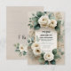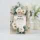 Complemente o seu convite de casamento rústico boho com este cartão de resposta RSVP elegante. Com rosas brancas em aquarela, folhagens de eucalipto e um fundo de textura de lino suave. Personalize facilmente com detalhes de resposta do convidado.