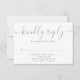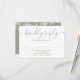 Um cartão RSVP na moda com seus detalhes definidos em tipografia química e personalizados com seus nomes, folhagem floral desenhada à mão e luzes de cordas em um fundo verde sábio no verso. Projetado por Thisnotme©