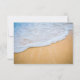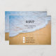 Cartão RSVP com fotografia de uma praia ouro marrom arenosa com surf branco e água azul.
