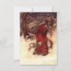 Cartão com a ilustração de Arthur Rackham Santa Claus (1907). Um Papai Noel de leito vermelho carregar um saco de presentes de Natal em uma madeira de neve. Elves voam ao seu lado. Um presente alegre para o Natal!