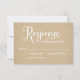 As cartas de RSVP de Casamento apresentam "Resposta" em um encantador roteiro branco, texto personalizado que pode ser personalizado e um fundo com uma aparência texturizada de papel kraft castanho rústico.
