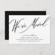 Preto e branco, movemos um novo anúncio de endereço com uma fonte moderna de script com uma coordenação de volta.