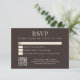 Create your own custom wedding RSVP cards for your guests. Simple modern design with elegant typography in brown color design and scannable QR code to your website.