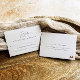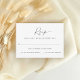 Um cartão de resposta moderno com um número de convidado de uma pessoa e um roteiro elegante do estilo caligrafia. O verso tem um endereço de site.