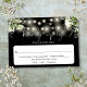 Este elegante cartão RSVP de casamento preto-e-branco, com luzes bonito de cordas e verde floral, pode ser personalizado com suas informações em tipografia gráfica. Projetado por Thisnotme©