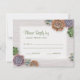 Este design de suculentos rústico é perfeito para um casamento moderno ao ar livre. O design apresenta suculentos coloridos de cacto, emparelhados com um fundo de madeira de cinza rústica.