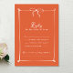 Uma placa RSVP coordenadora com um fundo cor de laranja quente com um quadro branco e um arco assimétrico. Projetado para casamentos românticos modernos, este cartão de resposta combina lindamente com o conjunto de convites para cheios.