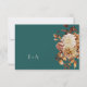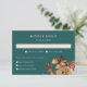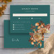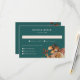 Placa RSVP Floral de outono Teal. Simplifique seu planejamento com esta placa RSVP que apresenta opções de refeição claramente marcadas e um design elegante. Colocado sobre um fundo de terra rico, o cartão é emoldurado com folhas de cor d'água pintadas manualmente em laranja queimada e terracota, aliadas a creme e dálias beges e rosas de cobre. É uma adição prática, mas polida, ao seu conjunto de convites, que oferece aos convidados uma forma suave de responder enquanto reflete o seu tema de outono. Personalize-o para corresponder à sua visão de casamento.