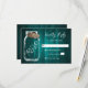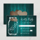 Cartão RSVP Teal Rustic Wood Mason Jar Burlap Hearts Wedding