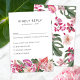 Placa RSVP Tropical Colorida. Faça uma resposta fácil e na moda com esta Placa RSVP Vertical, com um arranjo vibrante de palmas tropicais, folhas monstera, orquídeas e flores de hibisco em verdes, magentas e pinks exuberantes. Os hóspedes podem escolher facilmente as refeições enquanto admiram o padrão tropical coordenado nas costas. A personalização é simples — altere o texto, os estilos de fonte, os tamanhos de fonte e até mesmo o plano de fundo para corresponder ao estilo exclusivo de seu evento. Deixem cada peça da vossa suíte de casamento refletir o paraíso que estão a criar — capturem o RSVP deles com um design tão vibrante como a vossa história de amor.
