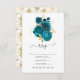 Turquesa - rosas em aquarela shabby-chic turquesa com folhagem em folha de ouro falso para casamento, personalizável para os detalhes do seu evento.