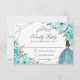 Cartão RSVP Turquoise Blue Floral Quinceañera Silver Princess