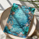 A striking ocean-inspired wedding design featuring luminous turquoise watercolor textures, sculpted starfish, flowing nautical rope, and deep sea botanical accents. The layered composition creates a rich underwater effect—bold, romantic, and immersive without feeling kitschy.
