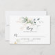 Produtos botânicos elegantes de cor aquosa verde e prados de ouro, incluindo gramíneas, eucalipto e plantas selvagens, convites de RSVP de design minimalista de ervas selvagens. Sutis tons de verde com botânicos com sotaque de ouro rodeiam seus detalhes de casamento usando uma mistura de caligrafia e fontes modernas. A parte traseira da placa é uma lavagem com aquarela verde macia com soques dourados.