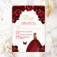 Esta elegante e glamourosa carta rsvp apresenta uma bela princesa com cabelos loiros num vestido vermelho burgundy. O texto combina o script manuscrito e as fontes sans serif modernas para um aspecto elegante e sofisticado. Os arranjos florais, borboletas e confete de ouro criam a mistura perfeita de rústicos e quicos. Perfeito para uma doce festa ou festa de aniversário de dezesseis. Gráficos por www.etsy.com/uk/shop/SunflowerDayLove