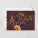 Vermelho burgundy escuro e sombrio fornece o fundo exuberante para este cartão de RSVP de outono. Flores silvestres rústicas e boho fornecem a estrutura em verde profundo, laranja preto e cobre. Flores roxas e rosadas clareiam um pouco. Perfeito para um casamento de outono tardio ou Halloween. O texto branco tem um certo ar de vintage.