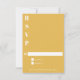 Esta placa de gabinete RSVP moderna apresenta um fundo amarelo na moda com mostarda com tipografia branca em negrito, fazer que facilita a resposta dos convidados. Com caixas de seleção de "Aceites" e "Lamenta" e uma linha para detalhes personalizados, ele garante um processo de RSVP suave. O lado de trás azul comum adiciona um pop de cor e sofisticação. Ideal para qualquer evento que combine talento contemporâneo com elegância clássica, esta placa RSVP é funcional e visualmente impressionante, definindo o tom para uma ocasião organizada e memorável.