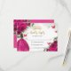 Esta placa floral de Quinceañera / Sweet 16 RSVP apresenta fuchsia vibrante / flores cor-de-rosa-quente, uma garota vestida com um vestido foquítico brilhante e borboletas rosa e douradas. Basta clicar no botão personalizar para editar os textos, alterar as fontes e as cores das fontes. Itens correspondentes disponíveis no repositório. c) Paperie fina somerset