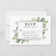 Watercolor Greenery Wedding RSVP Card inclui belos verdes botânicos e folhas de eucalipto. Sage Green Back.