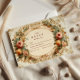 Um design elegante, enquadrado por ornamentado barroco, floresce e lança rosas em branco suave, pêssego e tons de ouro. O antigo pergaminho e os detalhes pareados criam uma atmosfera eterno e romântica, perfeita para uma celebração clássica inspirada em conto de fadas.