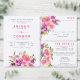 Elementos: Flores de aquarela vibrantes acentuadas por fontes modernas e divertidas. Apresenta nomes principais e casal primeiro e sobrenomes. Cores: Violeta, ameixa, fúcsia, verde, amarelo, borboleta, pincel. Temas: Divertido, moderno, caprichoso, vibrante, primavera, verão, eterno, romântico, jardim. Coleção: Vibrante Divertido Violet Fuchsia Floral Wedding Tipo de Produto Coleção: RSVP c/Escolha do Menu