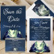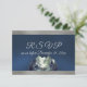 Design apresenta uma cena de montanha de aquarela na parte inferior frontal, sobre um fundo de bacia azul e cortada com fita prateada na parte frontal. O verso tem detalhes para o destinatário preencher. Projetado para coordenar com a coleção de convites para casamentos de Watercolor Mountain. Para alterar os detalhes, clique em "Personalizar". Para mover o texto ou alterar o tamanho, a fonte ou a cor do texto, clique em "Clique para personalizar mais"
