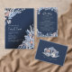 Este cartão de RSVP de entrada de correio eletrônico adiciona um toque encantador à sua suíte de casamento caprichosa. Apresentando o fundo gradiente de marinho com botânicos brancos, azuis e cor de pêssego, ele inclui opções de resposta engraçadas e ícones desenhados à mão adoráveis — como frango, vaca e vegetais — para os convidados selecionarem facilmente suas preferências de refeição. Misturando perfeitamente o design moderno inspirado na natureza com detalhes leves, este cartão de resposta é na moda e divertido para seus hóspedes preencherem e retornarem. Procure ID1110 para ver todos os produtos de coordenação nesta coleção. Nota: o design pode conter conteúdo gerador.