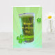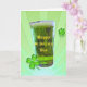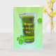 Vidro de cerveja verde com as palavras Feliz Rua. Dia de Patrick com duas camarões num fundo de sol verde. O dentro de cartão tem um pequeno copo de cerveja verde com as palavras "Slainte", uma torcida irlandesa. Personalize o nome do(s) destinatário(s), saudação e seu(s) nome(s).
