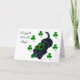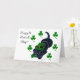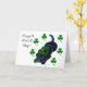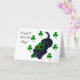 Rua... o dia de Patrick, o cartão de "Labrador Negro" para os fãs do Labrador! Pintura bonita e engraçada de Labrador Retriever pintada por Naomi Ochiai, do Japão. Adorável Black Labrador Puppy com Rua. A fantasia de Patrick está brincando com a folha Shamrock.