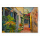 Esta carta colorida apresenta uma adaptação de uma pintura de arte fina de uma pequena rua em Ruas. Croix, Ilhas Virgens, pela artista americana Anna Unterman. A cena brilhante e ensolarada é um motim de cores. Há uma vinha vermelha, rosa e magenta bougainvillea sobre a autoestrada, bem como videiras de chama laranja e outros arbustos e folhas verdes. Os edifícios coloridos são amarelo, ouro, azul e verde. Retirada com permissão da propriedade de Anna Unterman. Todos os direitos reservados.