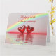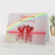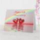 Cartão "Feliz 40º aniversário" com corações rubis flutuando na água sob um arco-íris, e dentro versículo personalizável.