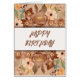 Celebrar um dia especial com o caloroso abraço dos tons de terra e dos florais encantadores. Este cartão de aniversário da The Botanical Press apresenta flores marrom ricas e castanho bronzeadas, acentuadas com pincéis de amarelo ouro e pincel mole. A saudação de "Parabéns Feliz" acrescenta um toque sincero, fazer perfeito para amantes da natureza e para aqueles que apreciam elegância rústica.