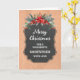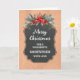 Feliz Natal para o cartão de padrinho com o padrão rústico do quadro de chalkboard e folhagem de inverno com poinsettias.