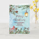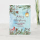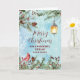 Feliz Natal para a amiga e sua carta de família com verde-inverno rústico, lanterna vintage e padrão de neves com aquarela.